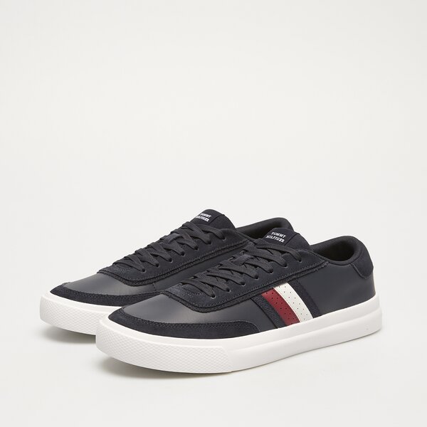 Sneakersy TH Cupset RWB są pełne odniesień do stylu preppy. To idealny kompromis pomiędzy wyrazistością a ponadczasową elegancją. Ten granatowy model znakomicie łączy sezonowe trendy z nutą retro. Zwraca uwagę smukłą, tenisową sylwetką, detalami all-American i luksusową skórą od sprawdzonych dostawców. Doskonale sprawdza się w szafach tych, co lubią powracać do mody sprzed lat.